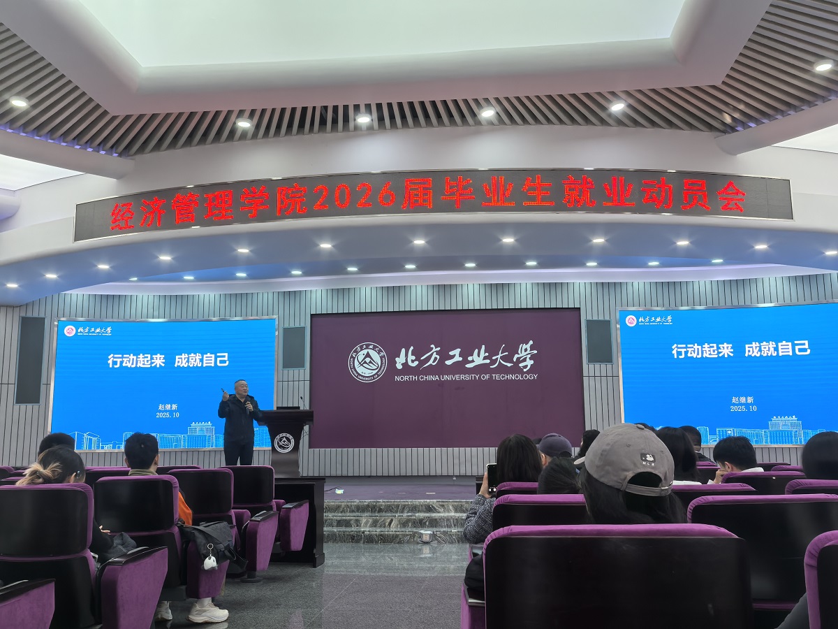 为帮助毕业生认清就业形势、明确职业方向、提振求职信心,搭建学院与学生间的就业沟通桥梁,10月14日,经济管理学院院长赵继新在广学报告厅以“行动起来,成就自己”为主题给2026届毕业生作就业动员。毕业年级辅导员和班导师,全体2026届毕业生参加了动员会。
