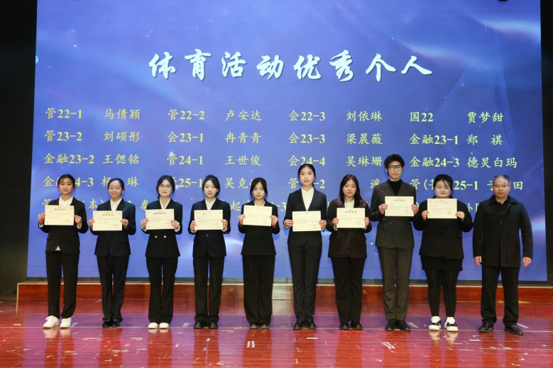 大会在庄重而热烈的氛围中圆满落幕,但其激发的奋进力量将在每一位经管学子心中持续激荡。荣誉不仅属于今天的获奖者,更属于每一个在追梦路上不懈奋斗的经管人。祝愿同学们在未来道路上,继续用智慧和汗水书写无愧于时代、无愧于青春的壮丽华章。
