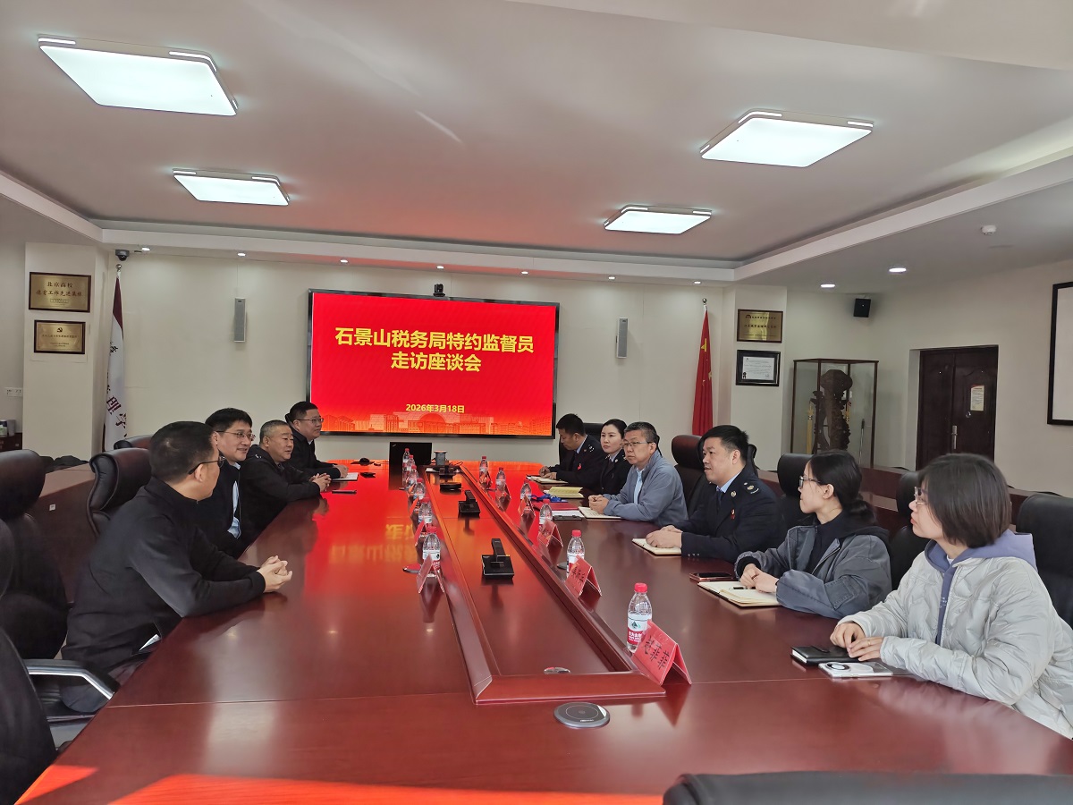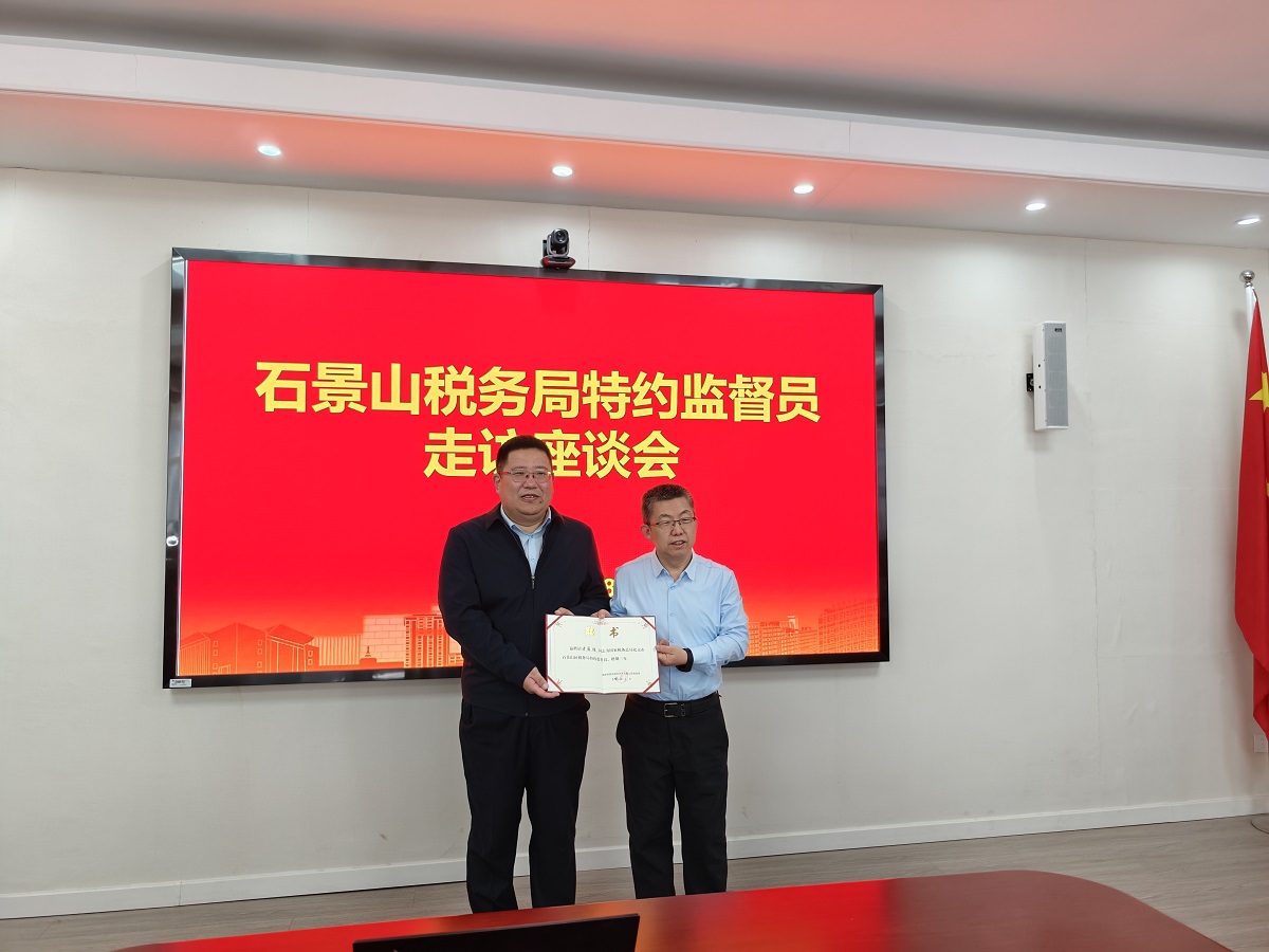 解春杰副局长首先介绍了召开此次座谈会的主要目的,明确了特约监督员的职责权限、工作内容、联系机制等,并为学院于国旺老师颁发了石景山区税务局特约监督员聘书。石景山区税务局此次从各单位共聘任特约监督员12人。