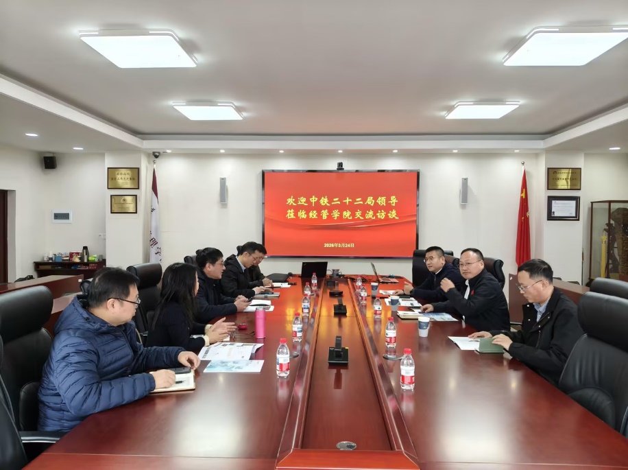 3月25日,中铁二十二局华北区域指挥长孙于力一行莅临经济管理学院,就新校区建设、校企地协同发展、乡村振兴项目深度合作等问题展开交流。李全明副校长、校发展规划办及经济管理学院相关老师参与交流。
