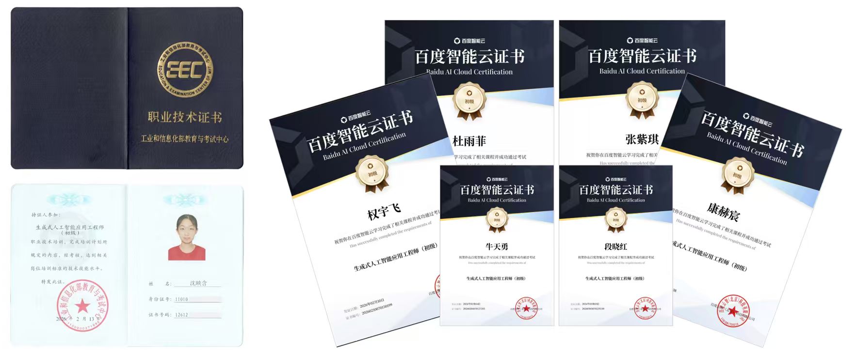近日,北方工业大学经济管理学院联合百度智能云千帆大模型产业(北京)创新基地,组织全校48名师生开展生成式人工智能应用工程师(初级)培训与考核工作。全体参训师生顺利通过考试,成功获得由工业和信息化部教育与考试中心联合百度发布的职业技能资格认证,实现全员取证。这是学院深化产教融合、推进创新创业教育改革,助力师生抢抓AI时代发展机遇的重要成果。