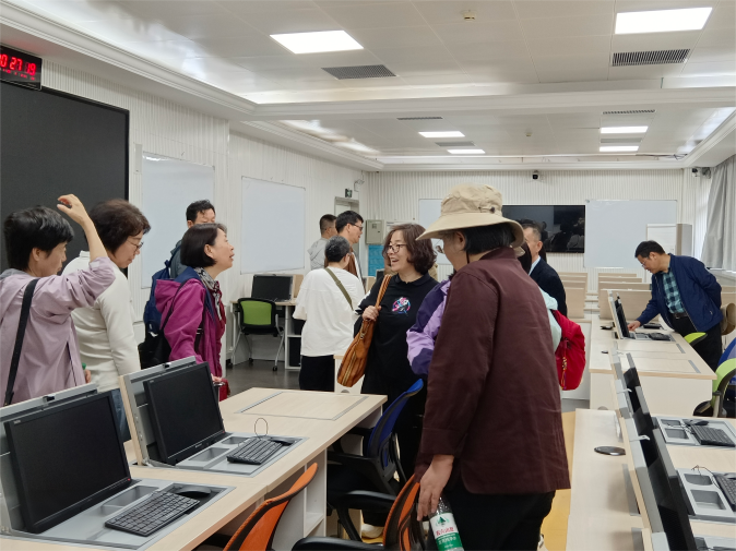十时左右,校友们移步经济管理学院所在的励学楼,参观了位于一楼的实验中心。现代化的虚拟仿真实验室、智慧教室与案例讨论室,让校友们对学院近年来的教学条件升级与人才培养模式创新赞叹不已。