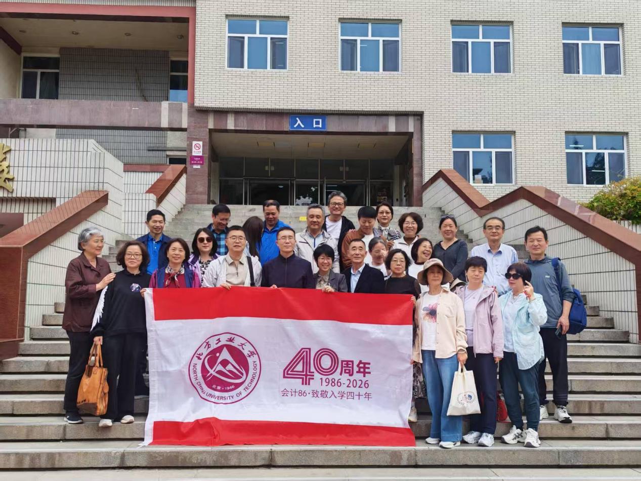 2026年是北方工业大学建校八十周年,4月26日经济管理学院会计专业86级校友从全国各地归来,重返母校,举行"致敬入学四十年"主题返校活动。学院党委书记谢朝阳老师热情接待了各位校友,陪问入家重温青春记忆,共叙师生情谊。