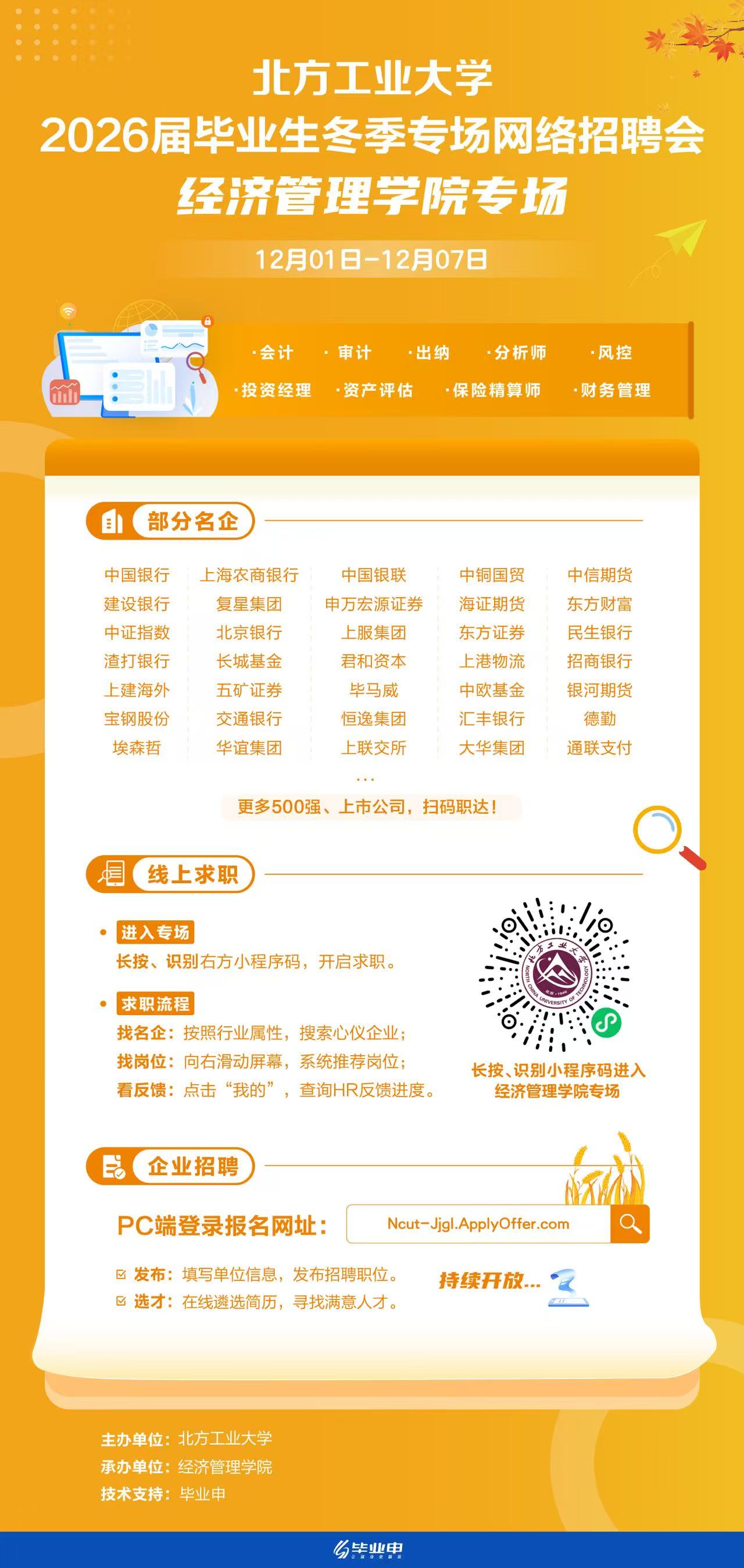 为贯彻落实教育部关于2026届毕业生就业工作的总体部署,深入开展就业育人工作,持续推进毕业生与用人单位精准供需对接,为我校毕业生高质量就业拓宽渠道,现决定举办专场网络招聘活动。