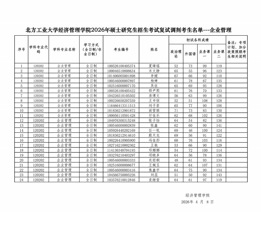 上一条: 北方工业大学经济管理学院2026年硕士研究生招生考试复试调剂考生名单---应用经济学