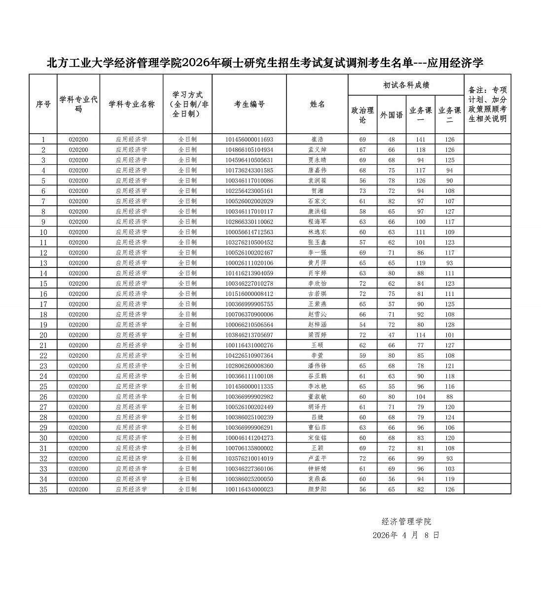 上一条: 北方工业大学经济管理学院2026年硕士研究生招生考试复试调剂考生名单---会计学