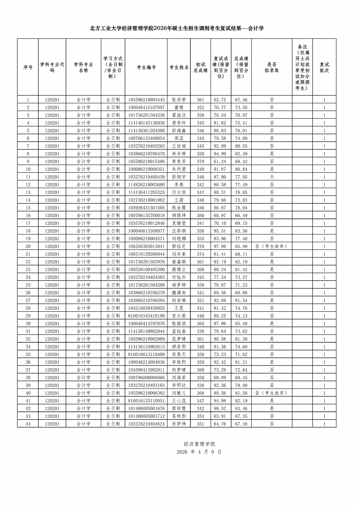 下一条: 北方工业大学经济管理学院2026年硕士研究生招生考试复试调剂考生名单 ---MBA(全日制)