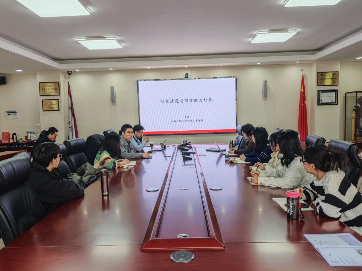 12月17日下午,中国人民大学劳动人事学院王桢教授应邀走进北方工业大学经济管理学院,在励学楼 201 开启第三十五期励学讲堂的学术盛宴。王桢教授以“研究选题与研究能力培养”为主题,为学院研究生作专题讲学,讲座由罗文豪教授主持。