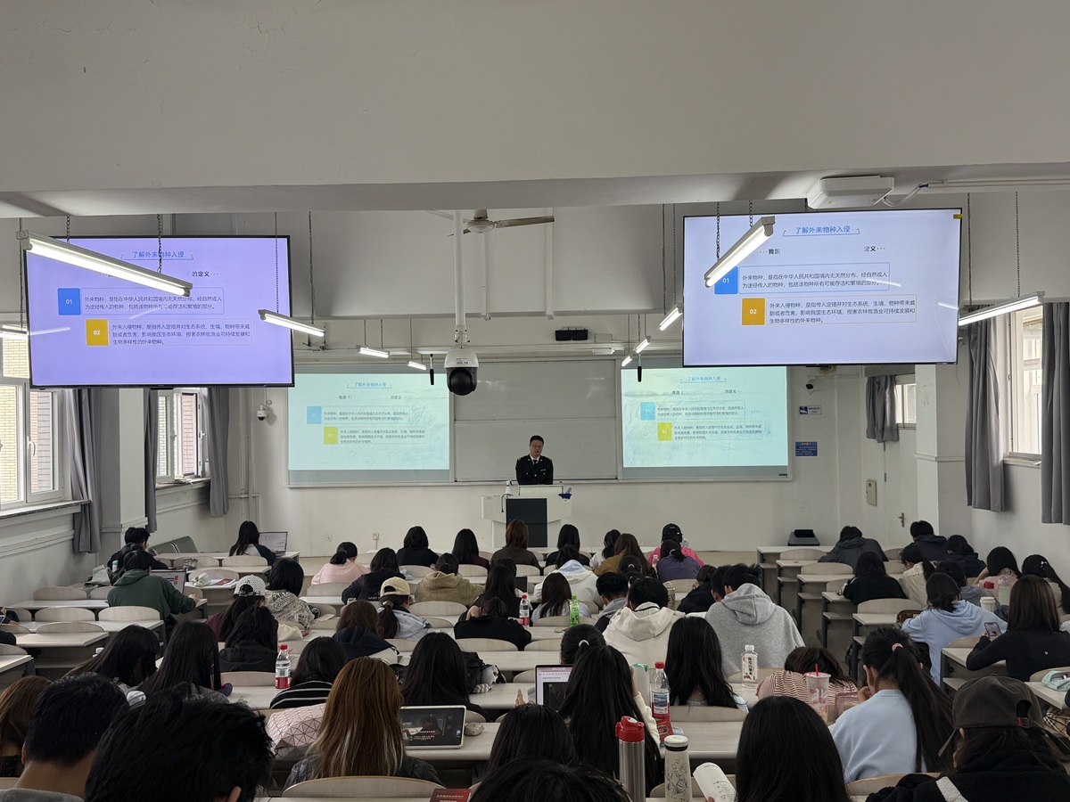 在第11个全民国家安全教育日来临之际,为深入践行总体国家安全观,切实筑牢校园国家安全思想防线,增强国门生物安全意识,4月15日下午,经管学院举办“海关与国门生物安全”主题宣讲会,特别邀请亦庄海关副关长王朝晖,查检一科科长陈浩林一行担任主讲嘉宾,120余名学生代表参加活动。
